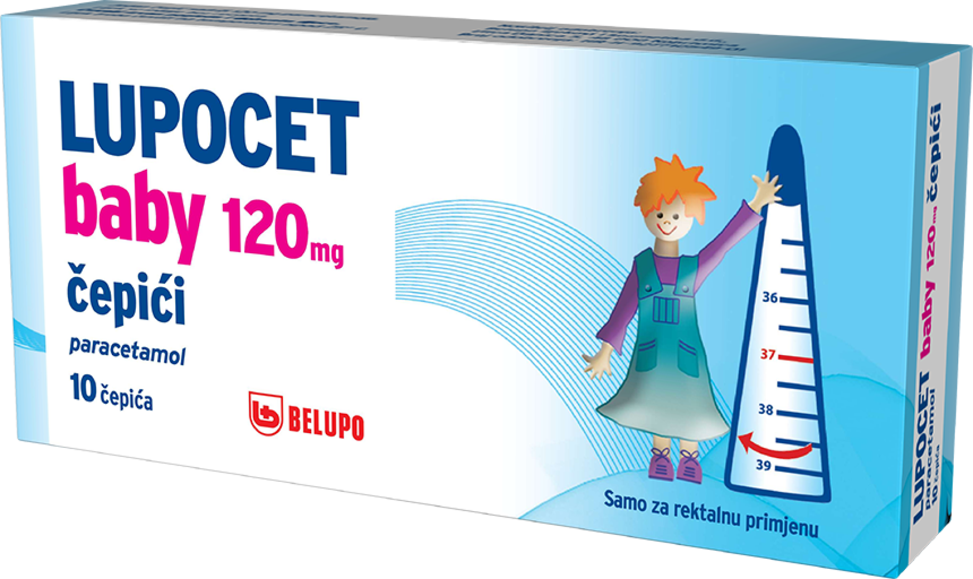 LUPOCET BABY čepići se primjenjuju za snižavanje povišene tjelesne temperature koja je povezana s prehladom, gripom, dječjim zaraznim bolestima (npr. vodene kozice, hripavac, ospice, zaušnjaci) ili reakcijom na cijepljenje, kao i za ublažavanje boli pri nicanju zuba, zubobolje, glavobolje i grlobolje.