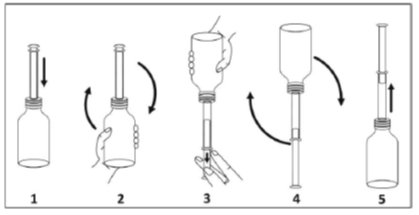 - Kako biste napunili štrcaljku za usta, okrenite bočicu sa štrcaljkom prema dolje.